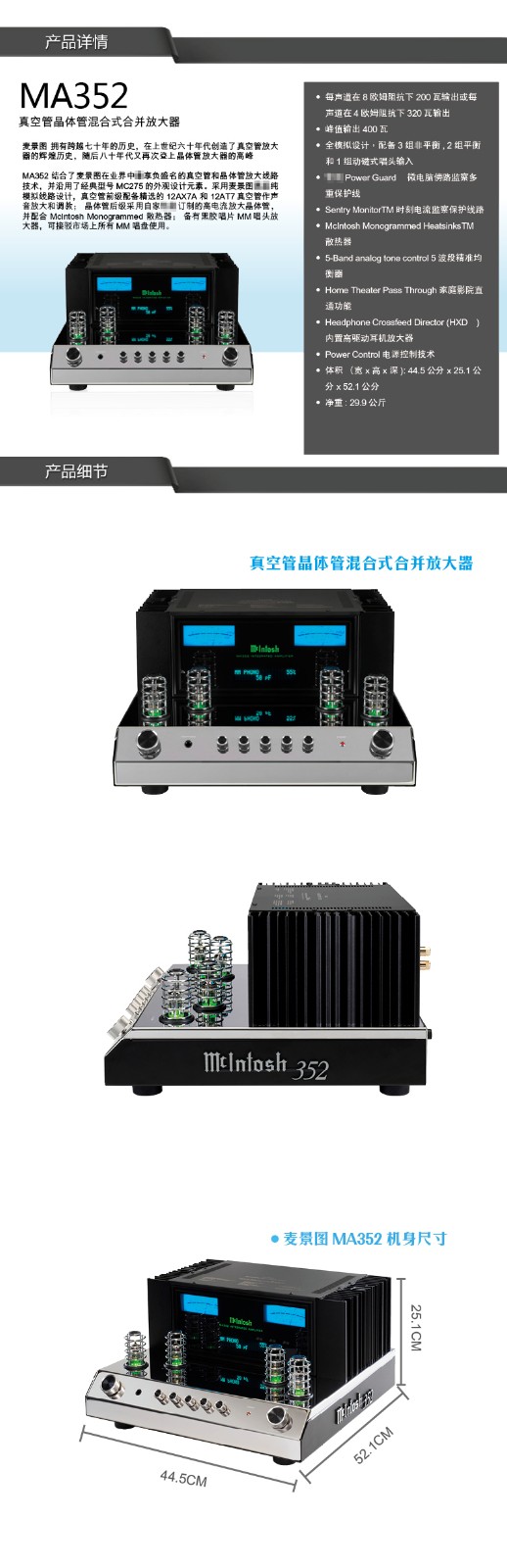 麦景图(mcintosh) MA352前胆后石合并式功放 美国功率放大器