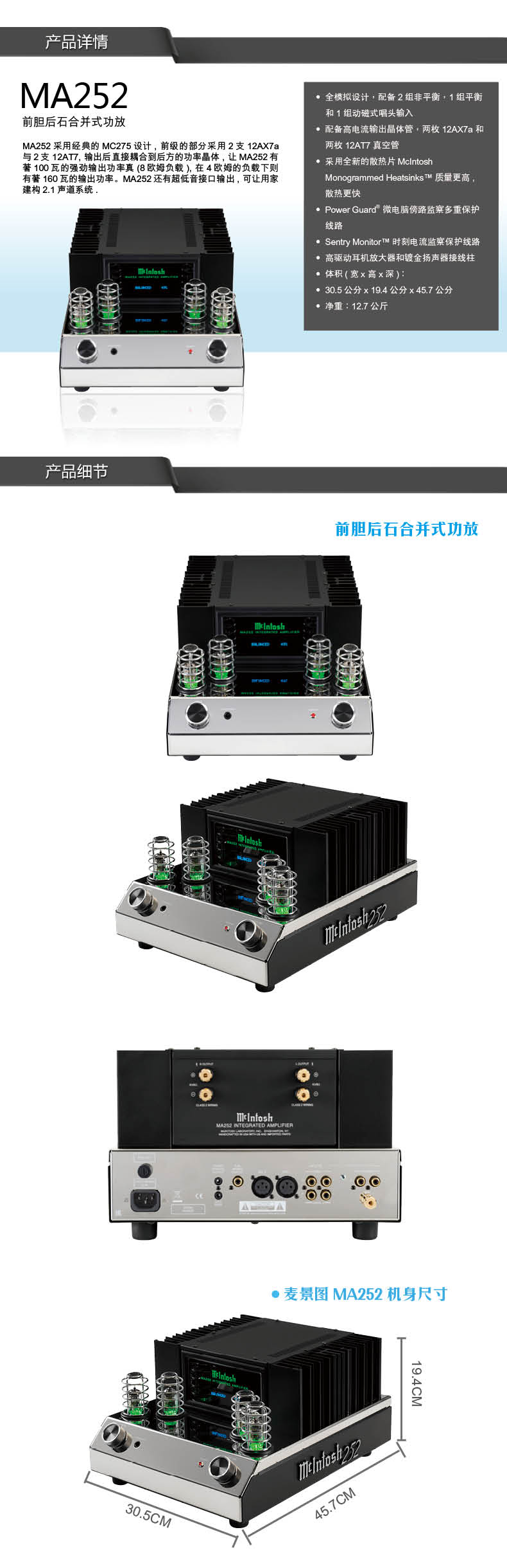 麦景图(mcintosh) MA252前胆后石合并式功放 美国功率放大器 胆机功放 黑色
