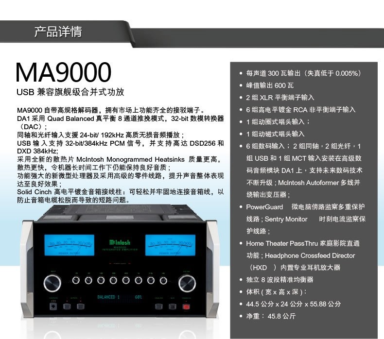 麦景图(mcintosh) MA9000 USB兼容旗舰级合并式功放 美国功率放大器