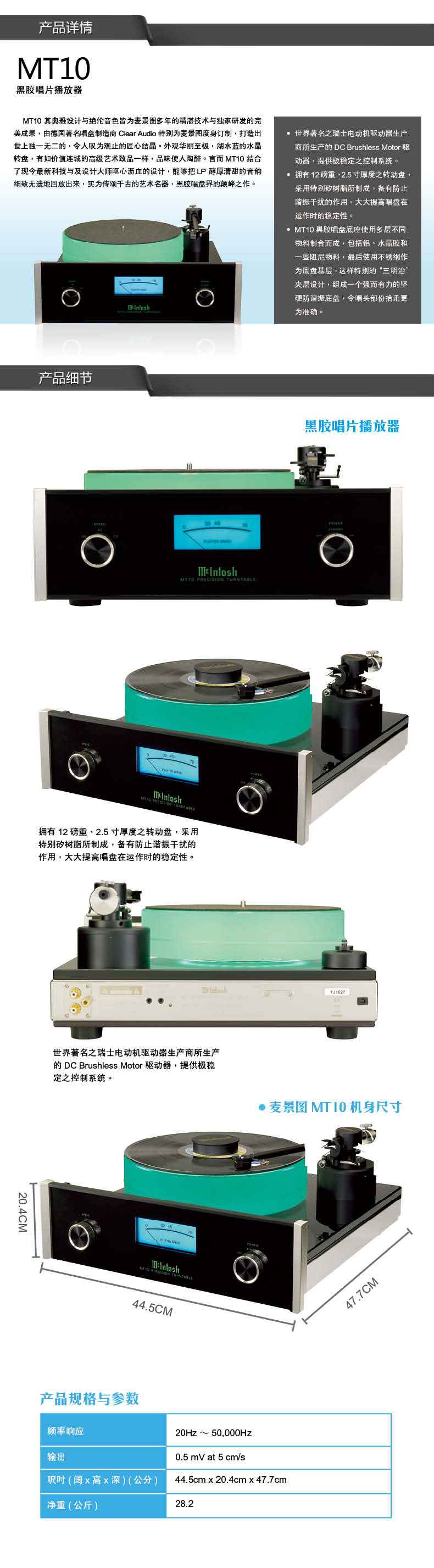 Mcintosh/麦景图 MT10 黑胶唱片播放器 黑色