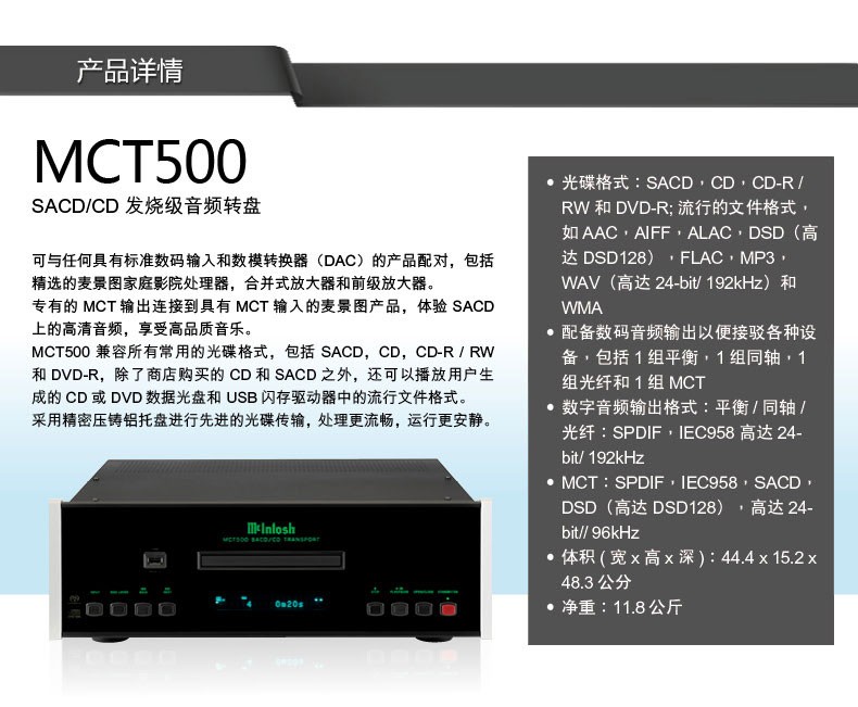 Mcintosh/麦景图 MCT500 SACD/CD发烧级音频转盘 美国发烧CD机 黑色